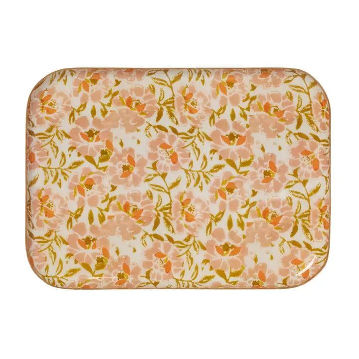 Bohemian chic bloemenschaaltje van geëmailleerd metaal. Al onze schaaltjes zijn vervaardigd met exclusieve merkpatronen in onze vernieuwde en modieuze kleurenpaletten. Het Guest-model vergezelt u tijdens uw feestelijke momenten: aperitief, ontbijt en diner met vrienden. Ze brengen de bohemian chic 'Bonheur du Jour'-touch in uw interieur. De schaaltjes zijn gemaakt van geëmailleerd metaal met een handgeschilderde gouden rand. Het is een uniek stuk, gevormd door de handen van Indiase ambachtslieden, wat zorgt voor onregelmatigheden. Effen achterkant. Niet vaatwasser- of magnetronbestendig. Afwassen met een vochtige spons. Afmetingen: Guest: 36 cm x 26 cm
