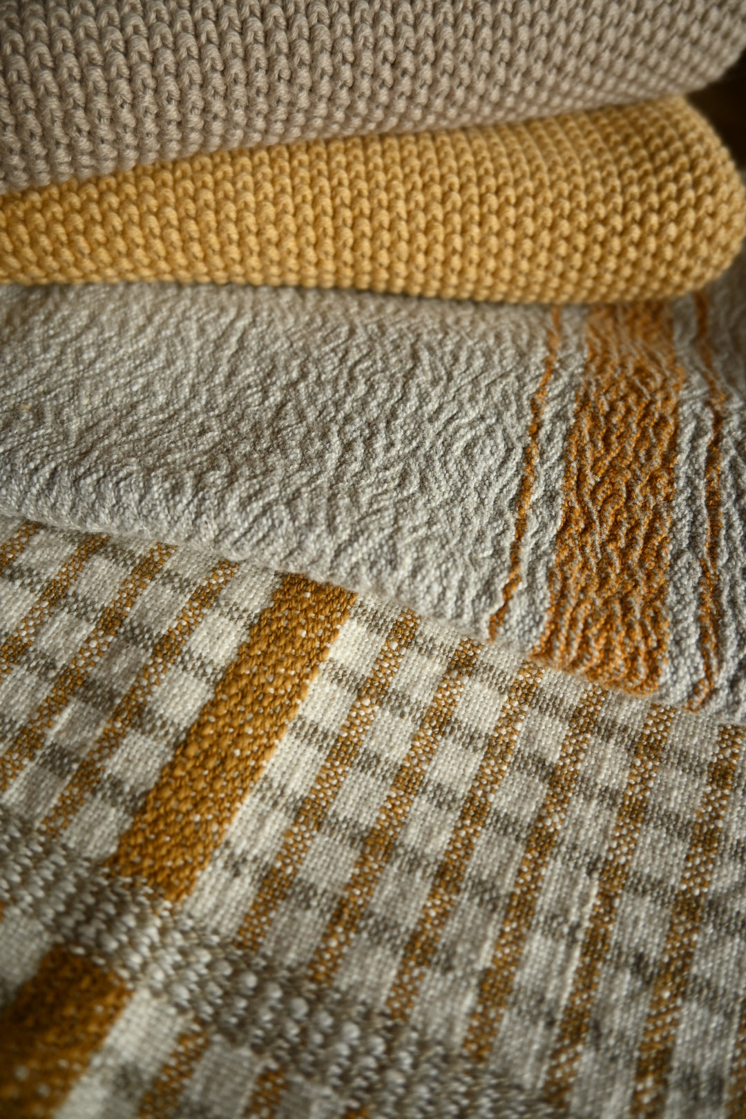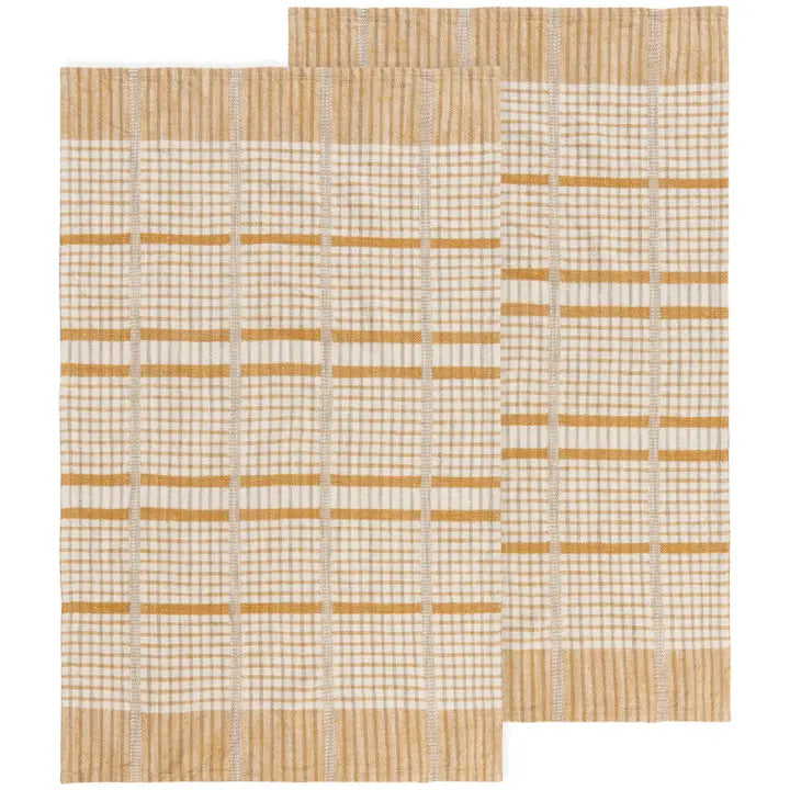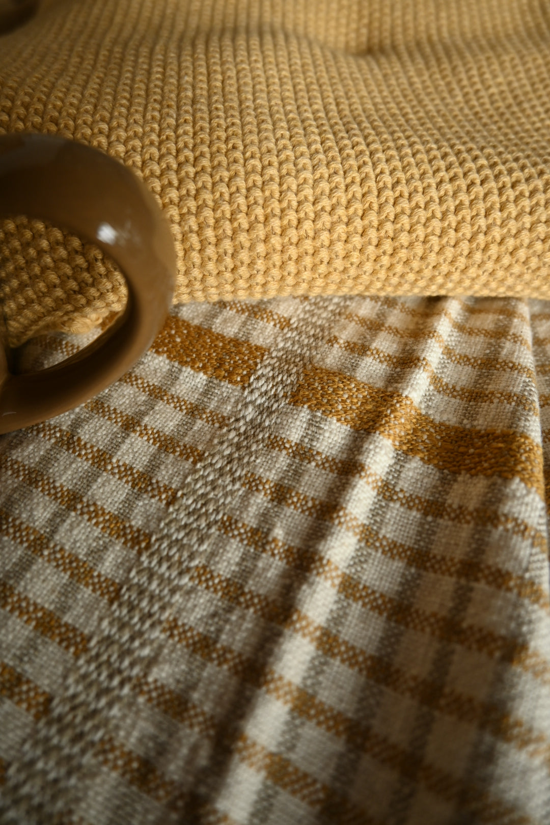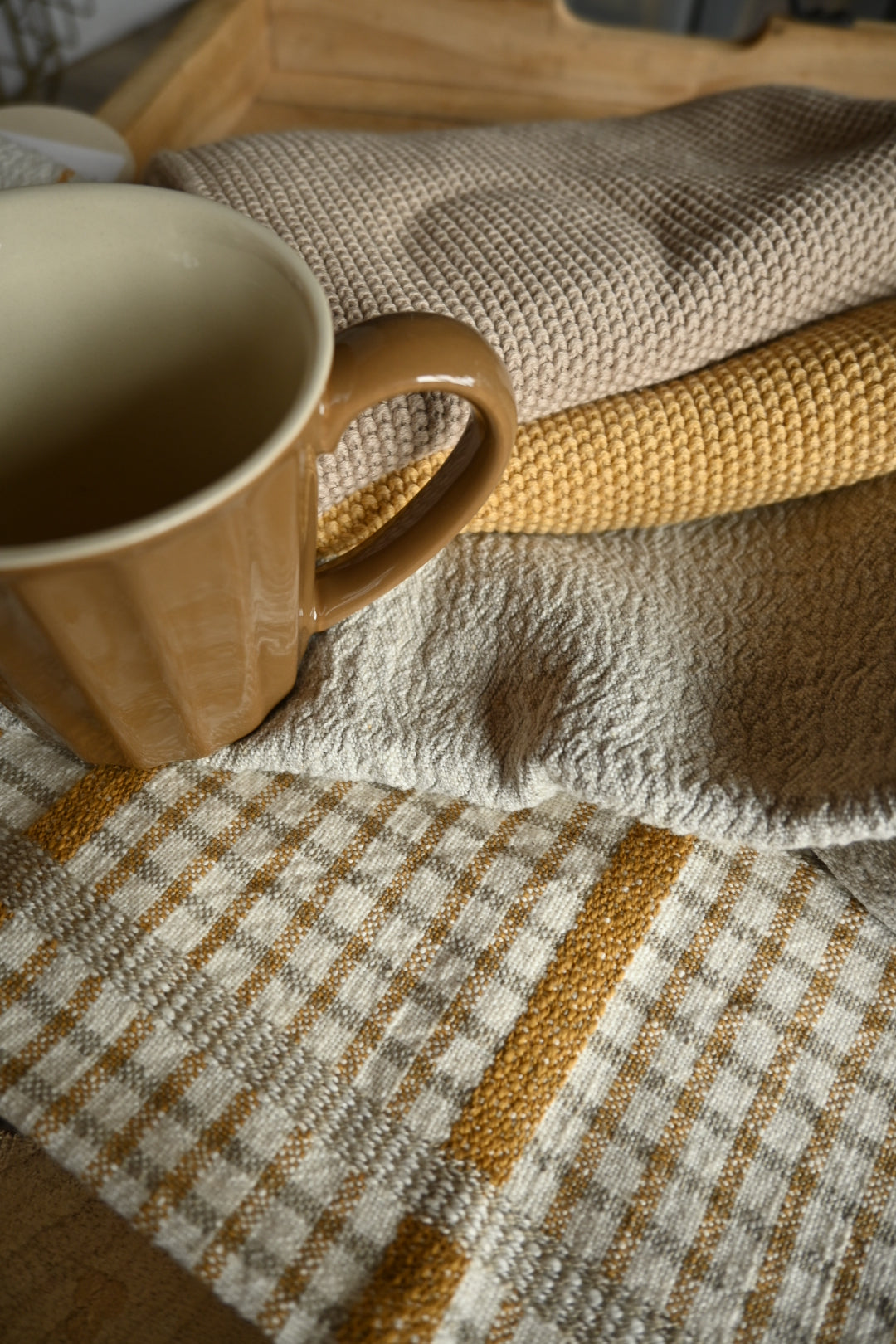 Prachtige set theedoeken. 100% katoen. 46x71cm. maisgele naturelkleurige ruit.