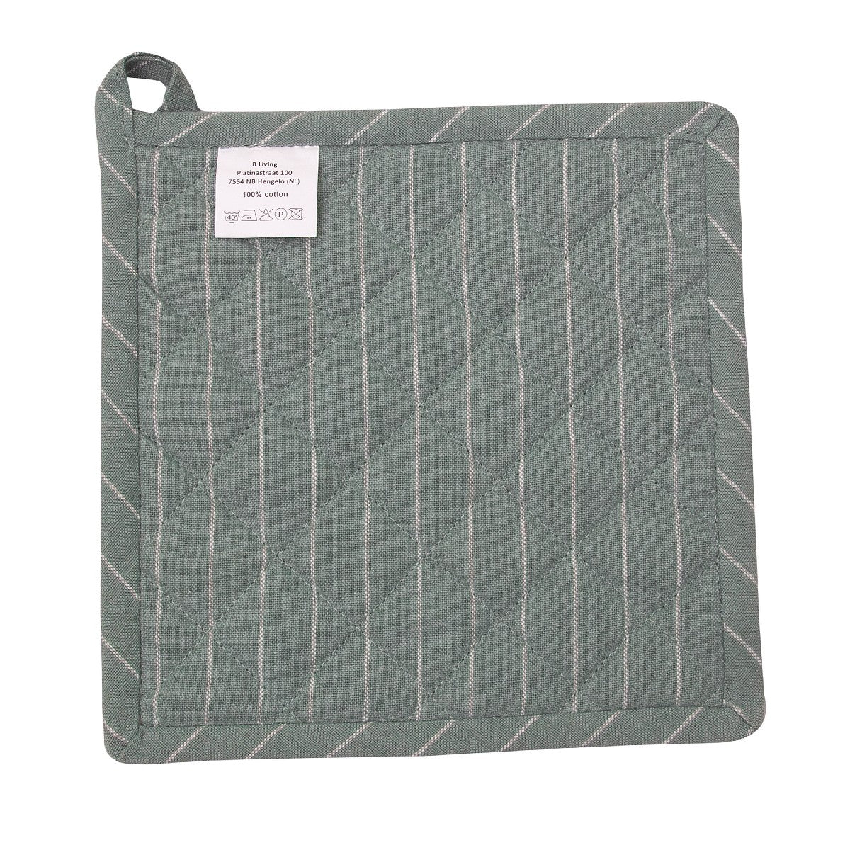 Prachtig stoer tafelkleed in een mooie eucalytusgroene kleur. met krijtstreepje. 140x300cm