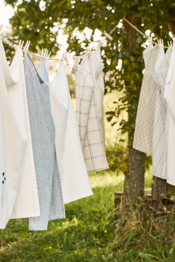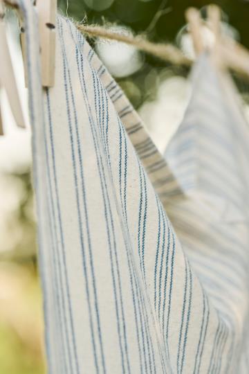 Sfeervolle streep theedoek van IB Laursen. Naturel blauw streepje