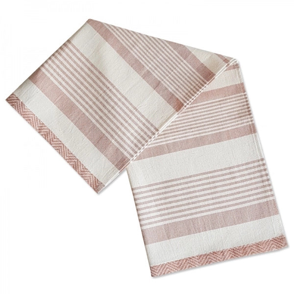 Prachtige 100% katoenen theedoek in landelijke stijl. rood/roze gestreept. wasbaar op 60 graden