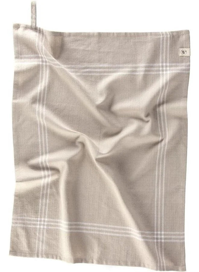 Mooie kleur theedoek grijzige zandkleur. Heel mooi niet te geel.